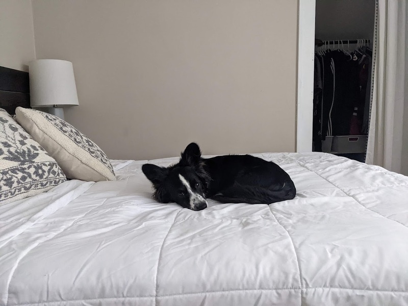 I didn't mind as much. These winter mornings are difficult, and whether you take a nap, scrape paint, play "wordle", scroll through Facebook, or scream into your pillow, everyone is entitled to their own morning routine. But our dogs weren't so understanding. Nobody asked them about canceling their morning nap, and they were pretty perturbed. They couldn't make it work without momma's warm body and pile of blankets on the living room couch. They took spiteful naps instead - not sleeping, but trying to evoke as much sympathy as possible with tired, watery eyes. This is the moment frozen in today's banner image. Imagine trying to get warmed up for the day with these mean eyes following you around the room. And people say cats are mean - girl dogs would give them a run for their money.